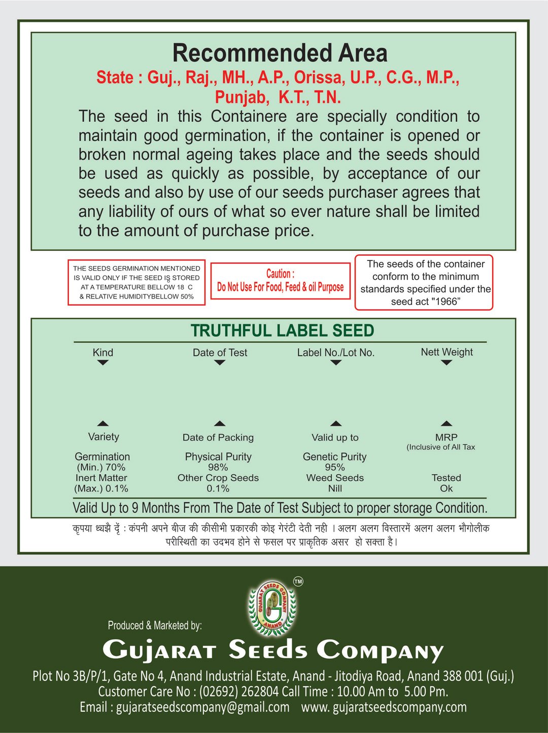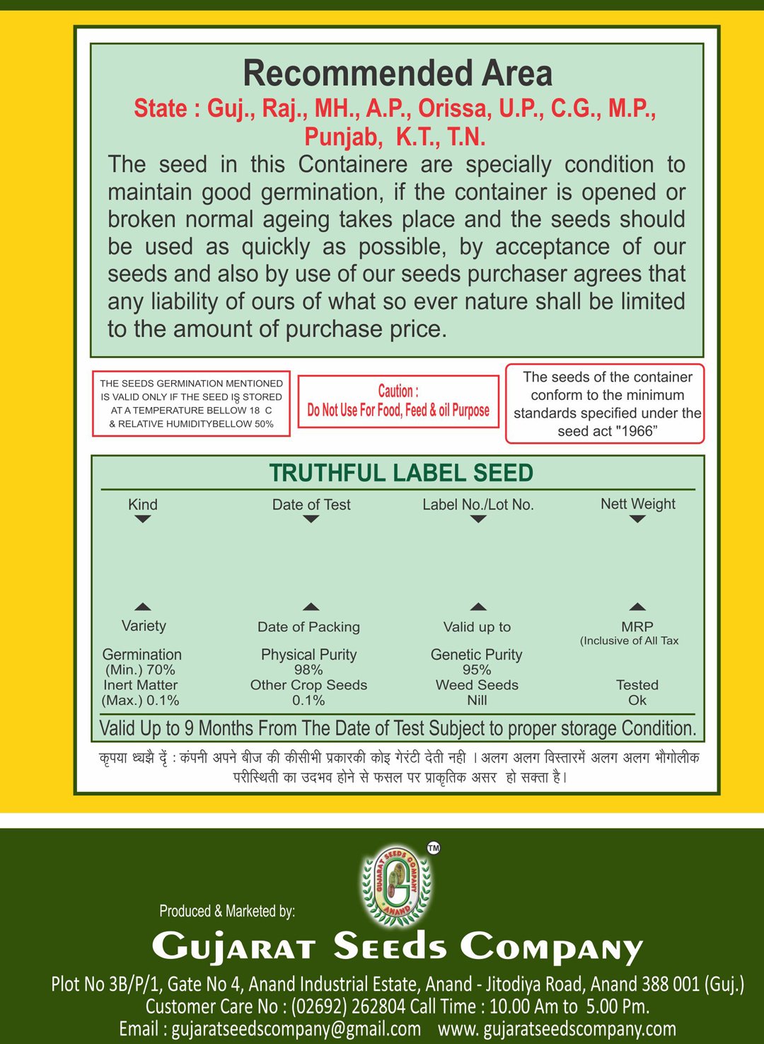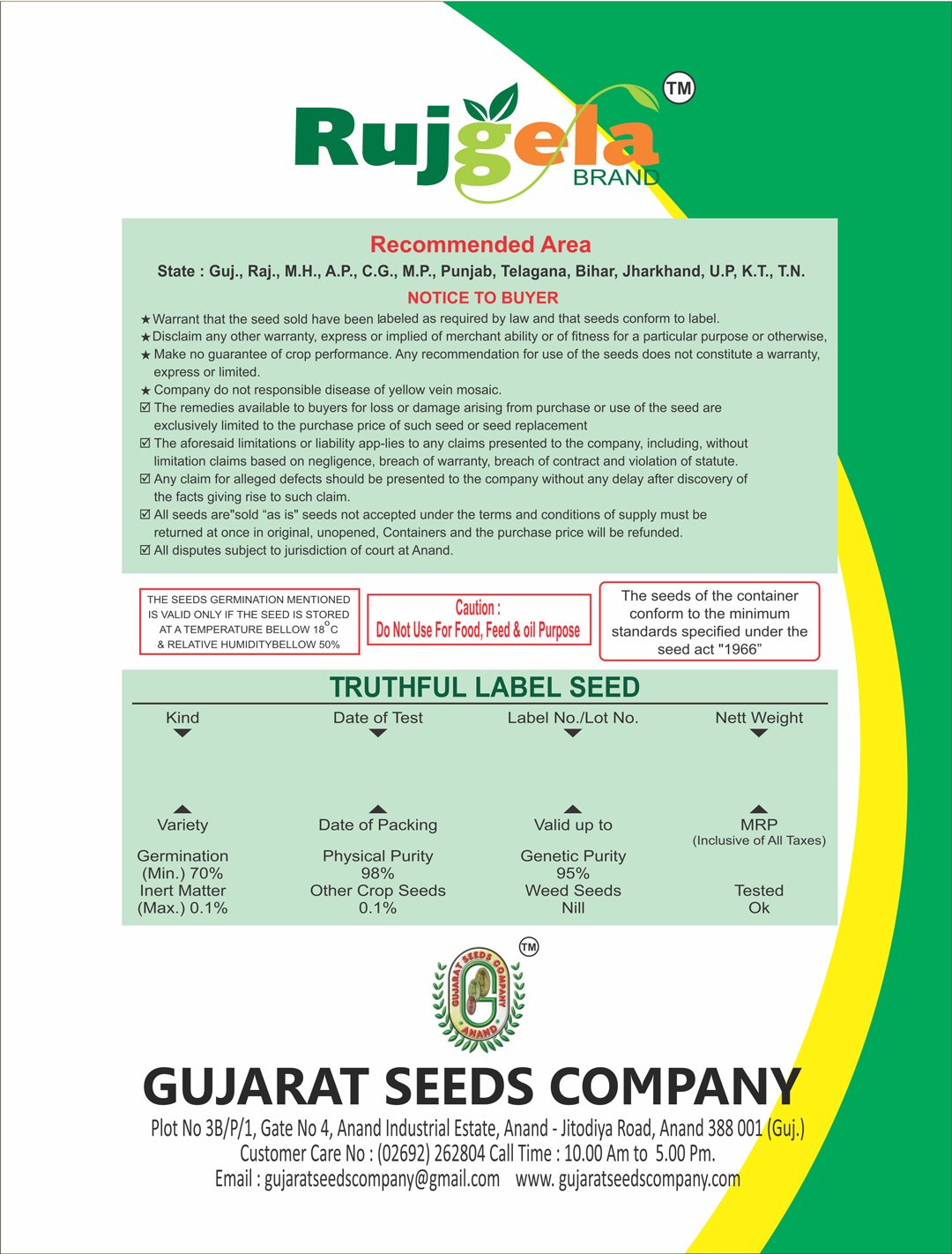 | 1st Picking | 40 – 45 Days after sowing |